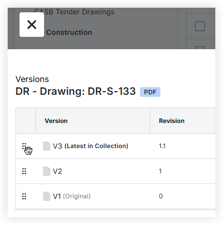 - Haga clic y arrastre la versión hacia arriba o hacia abajo para reordenarla, y suéltela para colocar la versión en su nuevo lugar.