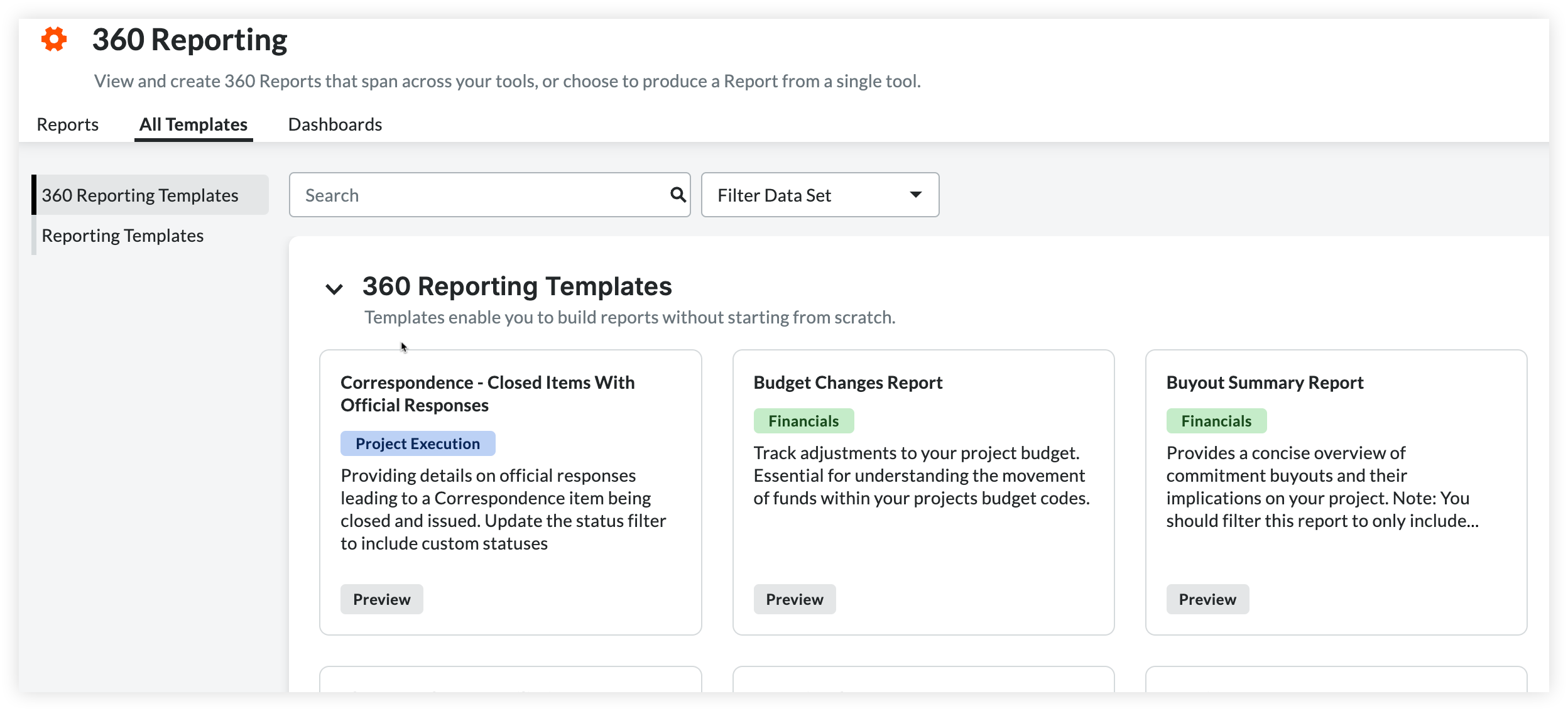 La herramienta 360 Reporting ofrece a los usuarios la posibilidad de crear, generar y exportar informes personalizados. Al diseñar un reporte, su autor puede incluir datos capturados por herramientas específicas de Procore y definir cómo agrupar, filtrar y ordenar los datos del reporte. Después de generar un informe, se puede exportar como un .xlsx, .PDF o .csv archivo.